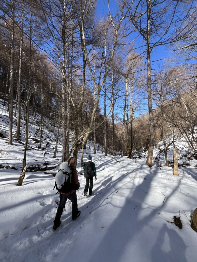 軽アイゼンを付けての山のぼりは久々、ひーひー言いながら、
