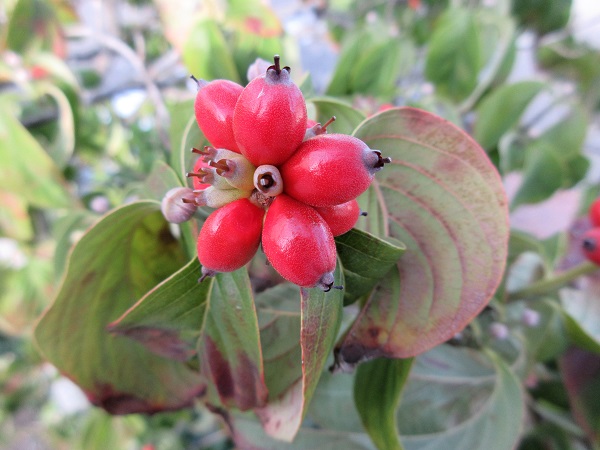 いつの間にか、ハナミズキの実が真っ赤になっていました。
