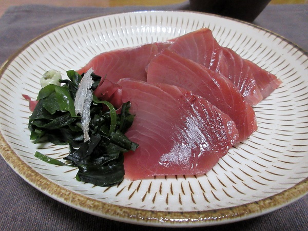 鰹のお刺身。スーパーに寄るのが遅くなったけど、GET出来ました♪