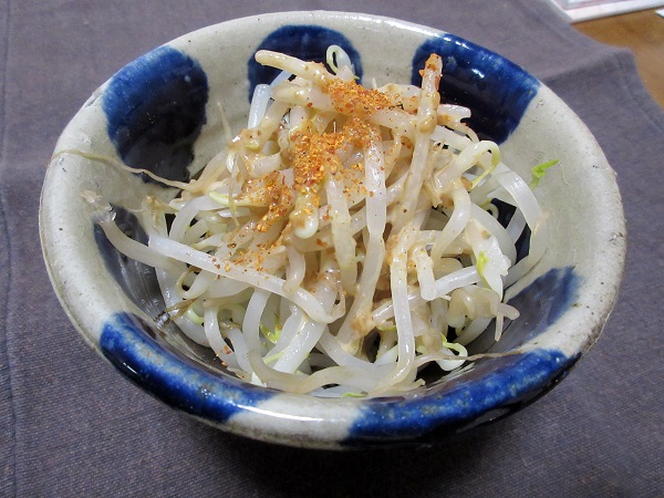 with レンチンもやし+柚子七味。旨し!