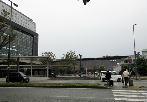 熊本駅前。市電乗り場です。
