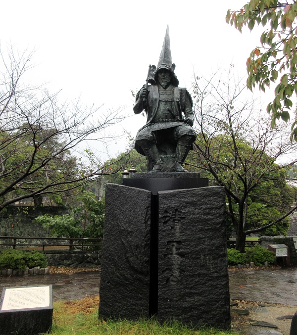 行幸坂のたもとにある加藤清正公の像。