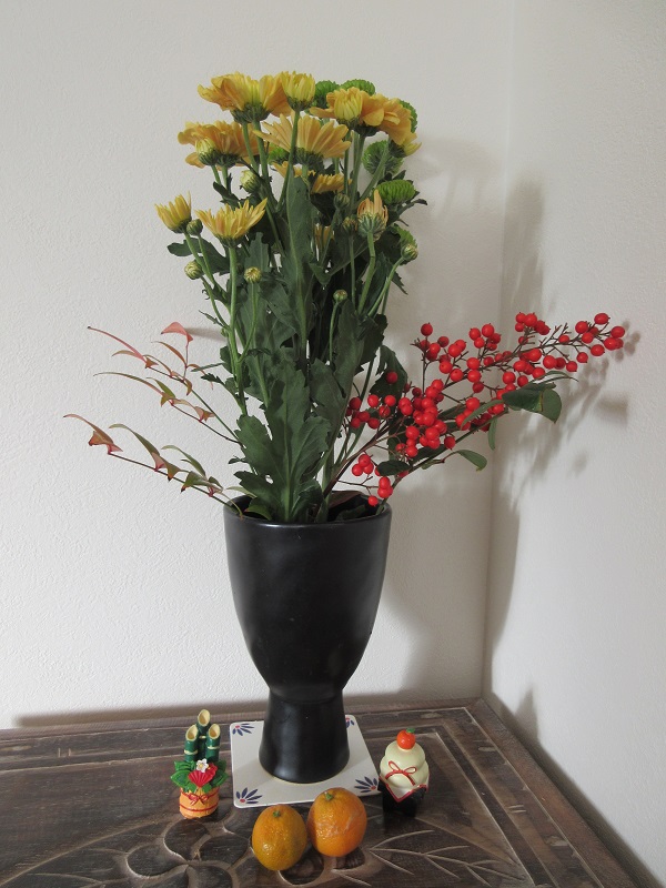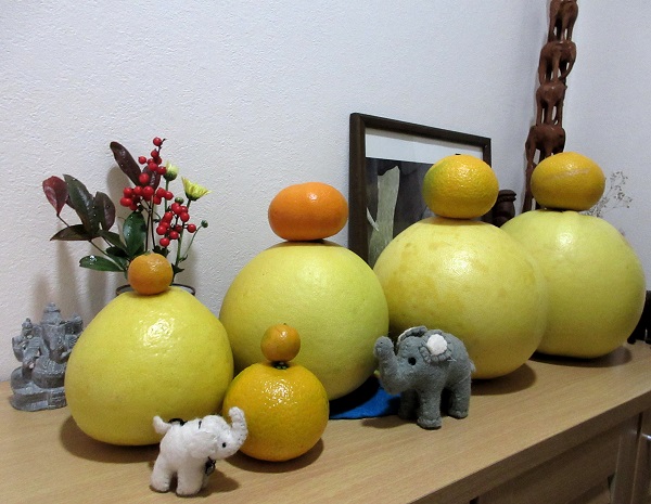 玄関には・・・鏡餅のように並んだ柑橘類!