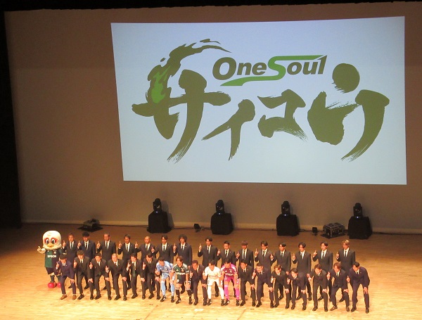 百年構想リーグのスローガンは「One Soul サイコウ」。