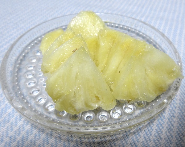 たっぷり鑑賞し食べ頃を過ぎた感が漂う「島パイン」に入刀。