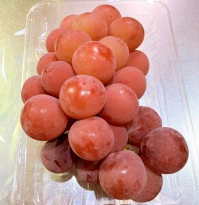 黄緑と赤が混ざった美しい色合いのぶどうです。